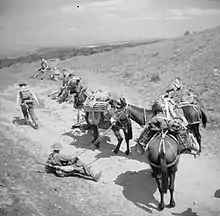 Mule teams from the 31st Independent Infantry Brigade training in the Black Mountains in Wales, 26 June 1941.