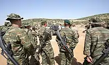 All Marines wear the standard-issue Greek Lizard camouflage BDUs of the Hellenic Army. Members of the 32nd Marines Brigade originally wore the blue beret, but this was changed to the green beret in 2001 because of its Special Forces role.[2] The blue beret was, subsequently, issued to infantry units.