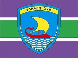 The unit motto is Courage Is Necessary (Greek: ΘΑΡΣΕΙΝ ΧΡΗ - Tharsin Hri), is officially attributed to the Goddess Athena, through the mouth of Odysseus, as words of encouragement to the Greek forces besieging the city of Troy.[3] However, it actually stems from Theocritus' Idylls and is unrelated to Homer.[4]
