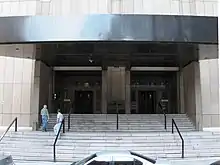 33 Thomas Street (formerly the AT&T Long Lines Building) is a 550-foot-tall (170 m) windowless skyscraper in the Tribeca neighborhood of Lower Manhattan in New York City, New York, United States. It stands on the east side of Church Street, between Thomas Street and Worth Street. Designed in the Brutalist architectural style, it is a telephone exchange or wire center building which contained three major 4ESS switches used for interexchange (long distance) telephony, as well as a number of other switches used for competitive local exchange carrier services. However, it is not used for incumbent local exchange carrier services, and is not a central office.