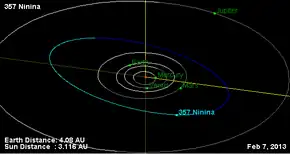 - 1 2 "357 Ninina (1893 J)". JPL Small-Body Database. NASA/Jet Propulsion Laboratory. Retrieved 11 May 2016.