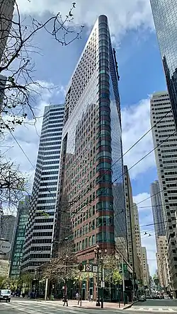 388 Market Street is a 24-story, 94 m (308 ft) mixed-use flatiron skyscraper, completed in 1987 on Market Street in the financial district of San Francisco, California. The building is clad in red granite. The top seven floors house luxury apartments, while the lower floors contain office space. It was designed by Skidmore, Owings & Merrill.