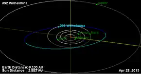 2. "392 Wilhelmina (1894 BF)". JPL Small-Body Database. NASA/Jet Propulsion Laboratory. Retrieved 10 May 2016.