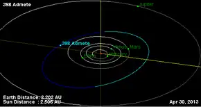 - 1 2 3 4 5 6 7 8 "JPL Small-Body Database Browser: 398 Admete (1894 BN)" (2015-12-11 last obs.). Jet Propulsion Laboratory. Retrieved 10 May 2016.