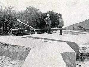 ![]() 4.7"/50 Mark 3 guns from Almirante Barroso used in Brazilian fortifications. | |