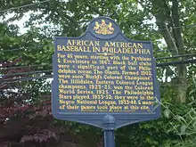 - ↑ "African American Baseball in Philadelphia". Pennsylvania Historical and Museum Commission. Retrieved 2009-01-14.