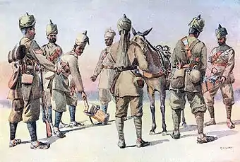The 46th Punjabis were an infantry regiment of the British Indian Army. It was raised in 1900, as the 46th (Punjab) Regiment of Bengal Infantry. It was designated as the 46th Punjabis in 1903 and became 10th (Training) Battalion of 16th Punjab Regiment in 1922. In 1943, it was converted into the 16th Punjab Regimental Centre. In 1947, the 16th Punjab Regiment was allocated to the Pakistan Army. In 1956, the 1st, 14th, 15th and 16th Punjab Regimental Centres where amalgamated to form the Punjab Regimental Centre.[1][2]