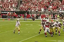 The 49ers–Cardinals rivalry is a professional American football rivalry in the National Football League (NFL) between the San Francisco 49ers and the Arizona Cardinals. The two teams met each other occasionally from 1951 to 2000. As part of the league's 2002 realignment, the Cardinals moved from the NFC East to the NFC West Division, of which the 49ers had been a part of since its inception as the Coastal Division in 1967. Since 2002, the teams have competed against each other as division rivals. The rivalry is a closely contested series, particularly after the 2002 realignment.[1] Through the 2023 season, the 49ers lead the series 36–29.[2]