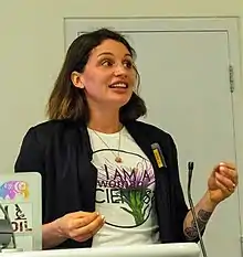 ![]() Co-founder Kelly Ramirez-Donders wearing organization logo at Imperial College London in 2019 | |