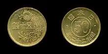 The 50 sen coin (五十銭硬貨) was a Japanese coin worth half of a Japanese yen, as 100 sen equalled 1 yen.[1] These coins circulated from the late 19th century to the early 1950s, when Japan adopted a single currency unit and this coin was demonetized.