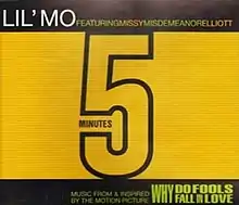 "5 Minutes" is the debut single performed by American R&B vocalist, Lil' Mo. The song features production and guest vocals by frequent collaborator Missy "Misdemeanor" Elliott and originally served as the lead single from the original soundtrack of Why Do Fools Fall in Love (1998). However, because it was ignored by American mainstream radio outlets, the song was instead released as the soundtrack's first international single while contenders "I Want You Back" and "No Fool No More" were chosen in its place as a leading single.