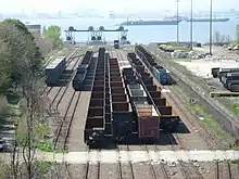 The 65th Street Yard, also Bay Ridge Rail Yard, is a rail yard on the Upper New York Bay in Sunset Park and Bay Ridge, Brooklyn. Equipped with two transfer bridges which allow rail cars to be loaded and unloaded onto car floats, the last of once extensive car float operations in the Port of New York and New Jersey. Located adjacent to the Brooklyn Army Terminal, it provided a major link in the city's rail freight network in the first half of the twentieth century. It was later used as a conventional railroad yard at the end of the LIRR/NY&A Bay Ridge Branch. The new transfer bridges were constructed in 1999, but remained unused until the transfer bridges were activated in July 2012.