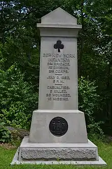 This article incorporates text from this source, which is in the public domain. - "66th New York Volunteer Infantry Regiment". The Battle of Gettysburg. 2018. Retrieved 6 February 2019.