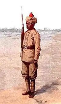 The 91st Punjabis (Light Infantry) was an infantry regiment of the British Indian Army. The regiment was raised in 1800 as a battalion of Madras Native Infantry. It was designated as the 91st Punjabis in 1903 and became 3rd Battalion 8th Punjab Regiment in 1922. In 1947, it was allocated to Pakistan Army, where it continues to exist as 3rd Battalion of The Baloch Regiment.[1]
