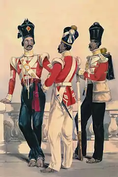 32nd Regiment Madras Native Infantry. Coloured lithograph by Henry Martens 1845.