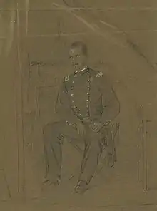 29 years old. Enrolled on April 23, 1861, at New York City, New York, for two years’ service; mustered into service as colonel of the regiment on May 4, 1861, at New York City, New York; on detached service from August 26th, 1861; absent, in arrest, from October 22nd, 1861; absent, in arrest, from November 5th, 1861; wounded in action on April 19, 1862, at South Mills near Camden, North Carolina; commanding the 1st Brigade, 3rd Division, 9th Army Corps, in 1862; mustered out of service with the regiment on May 20, 1863, at New York City, New York; brevetted to the rank of brigadier general of United States Volunteers on March 13, 1865, for “gallant and meritorious conduct during the war of the Rebellion.” (Commissioned as colonel on June 20, 1861, with rank from May 13th, 1861, original)[3][4]