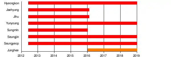 ![]() Left to right: Sung-min, Ji-hoo, Yun-young, Jae-hyung, Hyeong-kon , Seung-jin, Seung-yeop | |