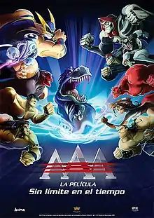 AAA, la película: Sin límite en el tiempo (also known as AAA - The Movie or simply Triple A) is a 2010 animated action-dramedy film produced by Ánima Estudios and distributed by Videocine. It is a fictionalization of the lucha libre wrestling team organization, Lucha Libre AAA World Wide, it was released in theaters on January 22, 2010.