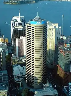 The ANZ Centre is an office skyscraper in Auckland, New Zealand.[2] Located at 23 Albert Street, the tower stands at 143 metres (469 ft) in height and has 35 levels of office space, with a total of 33,187 m2 (357,220 sq ft) floor space.