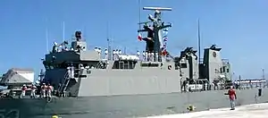 The ARM Guanajuato (PO-153) is a Durango-class oceanic patrol vessel in the Mexican Navy with a 57mm main gun turret and a helicopter landing pad, currently primarily used for drug interception and maritime security in Mexican territorial waters. It is also armed with SA-18 Grouse missiles. Like other ships of this class, it was designed and built in Mexican dockyards, and is sometimes referred to as a compact frigate. It was named after the Mexican state of Guanajuato.[1]