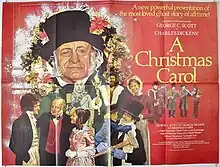 A Christmas Carol is a 1984 British-American made-for-television film adaptation of Charles Dickens' A Christmas Carol (1843). The film was directed by Clive Donner, who had been an editor of the 1951 film Scrooge, and stars George C. Scott as Ebenezer Scrooge. It also features Frank Finlay as Marley's ghost, David Warner as Bob Cratchit, Susannah York as Mrs. Cratchit, Angela Pleasence as the Ghost of Christmas Past, Edward Woodward as the Ghost of Christmas Present and Roger Rees as Scrooge's nephew Fred; Rees also narrates portions of Charles Dickens' words at the beginning and end of the film. The movie was filmed in the historic medieval county town of Shrewsbury in Shropshire.[1]