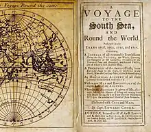 Once the journey was over, sailor Edward Cooke (not to be confused with the later Captain Cooke) wrote up an account, in two volumes, that was printed the next year.[1] In it were updated maps, including of the Amazon River, and An Account is given of Mr. Alexander Selkirk, about a man who had been marooned on the uninhabited island of "Más a Tierra" (renamed Robinson Crusoe Island in 1966), for four years and it covered his manner of living being adept at hunting, taming wild beasts and making use of the resources available. Selkirk's story is the inspiration for the 1719 novel, Robinson Crusoe.[2]