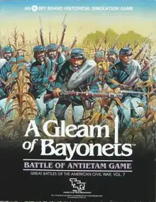 A Gleam of Bayonets: The Battle of Antietam is a two-player "monster" wargame (contains more than 1,000 counters) that simulates the 1862 Battle of Antietam.[1] The game is a regimental-level recreation of the battle, using a scale of 1 hex for each 120 yards. Each game turn represents 20 minutes of time.