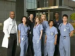 ![]() The cast of the first season of Grey's Anatomy, excluding Alex, all of whom appear in the pilot episode. | |