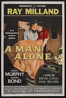 A Man Alone is a 1955 American Western film directed by Ray Milland (credited as R. Milland) starring Ray Milland, Mary Murphy, Raymond Burr, and Ward Bond. The story involves a man (Milland) who stumbles onto the aftermath of a stagecoach robbery in the Arizona desert in which there were no survivors.[1]