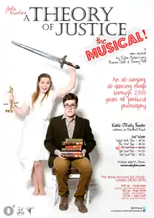 FringeGuru.com described A Theory of Justice: The Musical! as "bizarre, brave, deranged, intelligent, creative and ever-so-slightly magnificent".[24] Reviewer Chris Grady wrote, "I sat watching A Theory of Justice desperately trying to remember who wrote it... Only on leaving... did I realise this is a wholly new, original work."[25] EdFringeReview.com described the musical as "probably the most unashamedly intellectual musical ever written... It is best not to take this show too seriously since thankfully it doesn’t seem to take itself seriously either... entertaining and thoroughly original".[26] A review on BroadwayBaby.com called it "a humorous and enlightening musical… ambitious and brave".[27] A reviewer for The Flaneur wrote: "This is what the Edinburgh fringe should be like... philosophy with a smile on its face, doing the conga through history."