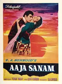 Aaja Sanam is a 1968 Bollywood film directed by Yusuf Naqvi. The film stars Feroz Khan, Tanuja and Deven Verma. The film's music is by Usha Khanna and the lyrics by Indeevar.