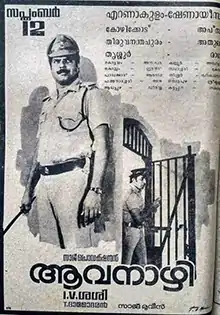 Aavanazhi is a 1986 Indian Malayalam-language action film directed by I. V. Sasi, written by T. Damodaran. The film deals with social and political issues of that time. It stars Mammootty, Geetha, Seema, Sukumaran, Captain Raju, Janardanan, Jagannatha Varma, Innocent, Thikkurisi Sukumaran Nair, Sreenivasan and Sankaradi.[1]