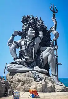 Sculpture of Shiva in the form of Gangadhareshwara against the backdrop of the Arabian Sea