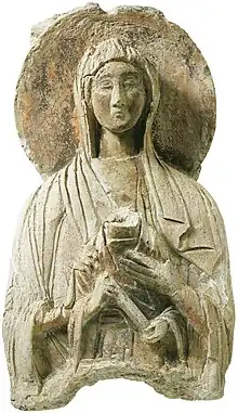 For most of them it is practically impossible to trace their original location, since they are mostly small fragments now completely estranged from the context for which they were intended: they are, for the most part, small capitals, column bases, fragments of cornices or remnants of larger decorative plastic complexes. Among the most historically, artistically and documentarily significant pieces are the remains of the abbey church portal, some funerary inscriptions, a lunette worked in bas-relief, and two Madonnas with Child in stucco, but of uncertain provenance. Most of the fragments are dated to the earliest phases of the monastic complex (8th–10th centuries), while the others, the most substantial, can be ascribed to the 12th–13th centuries, to the renovations carried out by Gonterio. Other, later pieces are distributed from the 15th to 17th centuries.[106]