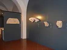 In addition to the structures that emerged during the archaeological excavations carried out on the abbey site, a group consisting of about a hundred fragments of various kinds, mostly stone and from the original plastic and architectural decoration of the monastic buildings, has survived. These fragments, either recovered directly from the abbey structures being demolished or recognized as coming from Leno only later, or still recovered during 20th-century excavations, are mostly preserved in the Santa Giulia Museum in Brescia and in public places or private collections in Leno.[106]