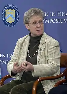 Abby Joseph Cohen (born February 29, 1952) is an American economist and financial analyst on Wall Street. She is a professor of business at Columbia Business School.[1] In 2001 she was named one of the 30 most powerful women in America by Ladies Home Journal, and she has been named as Barron's 100 most influential women in finance every year since the list's inception.[2] She worked at Goldman Sachs for many years, working as the firm's Chief Investment Strategist prior to March 2007 and then leader of its Global Markets Institute, before retiring from this role in 2017.[3][4]