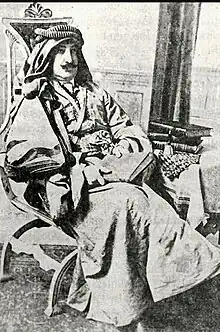 In 1911, several members of the Bedir Khan family toured the Bohtan area, also Abdürrezzak who at the time intended to be elected as a deputy for the Ottoman Parliament.[9] In 1912, he was supporting a Kurdish uprising around Erzurum.[10] By 1913 he demanded the inclusion of the Kurds in negotiations concerning an eventual land reform of the eastern provinces.[10] He argued that a lot of the land which was discussed to come under Armenian rule was owned and populated by a Kurdish majority.[10] In 1917, after the Russians captured the eastern provinces of Anatolia, he was given the post of a Governor in Bitlis,[11] following which he attempted to gain the Russians assistance for the Kurdish aims of an independent Kurdistan.[12] The Ottomans reportedly stated that he was seen as a leader of the Kurdish tribes by the Russians, and that he attended a meeting with them together with Simko Shikak in May 1914.[13] He was killed in 1918,[12][14] and it is unclear on the orders of whom he was killed.[15]
