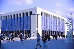 - Iranian Pavilion, EXO 67, 8,000 square meter exhibition hall in a building with blue Isfahan tile exterior, 1957