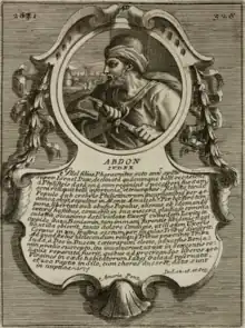 One or more of the preceding sentences incorporates text from a publication now in the public domain: Singer, Isidore; et al., eds. (1901–1906). "Abdon". The Jewish Encyclopedia. New York: Funk & Wagnalls. - ↑ Zeno. "Lexikoneintrag zu »Abdon (2)«. Vollständiges Heiligen-Lexikon, Band 1. Augsburg 1858, ..." www.zeno.org (in German). Retrieved 2022-07-13.