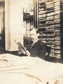 ![]() Dr. A. J. Grout in an herbarium, ca. 1900 | |