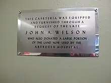 Plaque for John A. Wilson, Glen Haven Manor, Aberdeen Regional Hospital