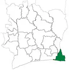 ![]() Location in Ivory Coast. Aboisso Department has had these boundaries since 1998. | |