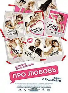 About Love (Russian: Про любовь, romanized: Pro lyubov) is a 2015 Russian romantic comedy. It was written by Anna Melikyan and Andrey Migachev directed by Melikyan. It won the Main Prize and the Prize of Film Distributors Jury at the Kinotavr film festival.[1] It also was awarded at the Golden Eagle Awards as the Best Feature Film.[2] A sequel was released in 2017.[3][4]