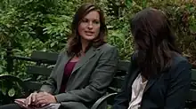 ![]() Detective Benson (Mariska Hargitay) telling Bureau Chief ADA Paula Foster (Paget Brewster) that the captain is being set up. | |