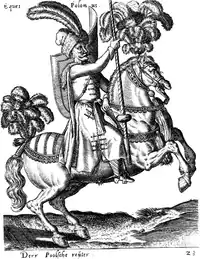 Abraham de Bruyn (c.1539, Antwerp - 1587, Cologne?)[1] was a Flemish engraver. He established himself at Cologne about the year 1577. He is ranked among the Little Masters, on account of his plates being usually very small. He engraved in the manner of Wierix, and worked entirely with the graver, in a neat and formal style, but his drawing is far from correct. It is believed that he worked also as a goldsmith. Among his portraits, and prints of small friezes of hunting, hawking, &c., which are esteemed for their neatness, may be mentioned:
