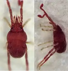 - ↑ Haitlinger, R. "New records of mites from Corsica and Sardinia, with descriptions of five new species (Acari: Prostigmata: Erythraeidae, Trombidiidae, Eutrombidiidae)." Genus 18.3 (2007): 529-543.
