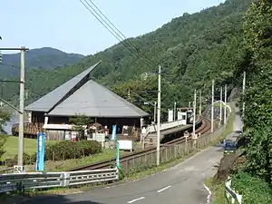 The station has one side platform serving a single bi-directional track. The station building is an octagonal structure. The station is unattended.