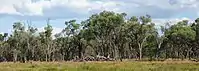 Species associated with gidgee have a limited capacity to resprout following fire damage.[4][5] Fire in any gidgee woodland would be a rare event under natural circumstances, since pasture is at best sparse in these communities, consisting of Chloris, Paspalidium, Dicanthium, Sporobolus and Eragrostis species.[6]