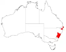 It is found in eastern parts of New South Wales from around Nowra in the south to Grafton in the north on hills and plains in sandy soils often over sandstone as a part of dry sclerophyll forest communities.[1]
