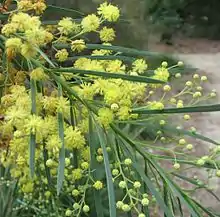 Plants grow to between 1.5 and 3 metres high and have narrow phyllodes that are between 4 and 10 cm long. The cream to yellow flower heads appear in racemes of 4 to 10 in the axils of the phyllodes. These appear predominantly between June and September in the species' native range and are followed by straight or slightly curved seed pods which are 4 to 11 cm long and 5 to 7 mm wide.[3]